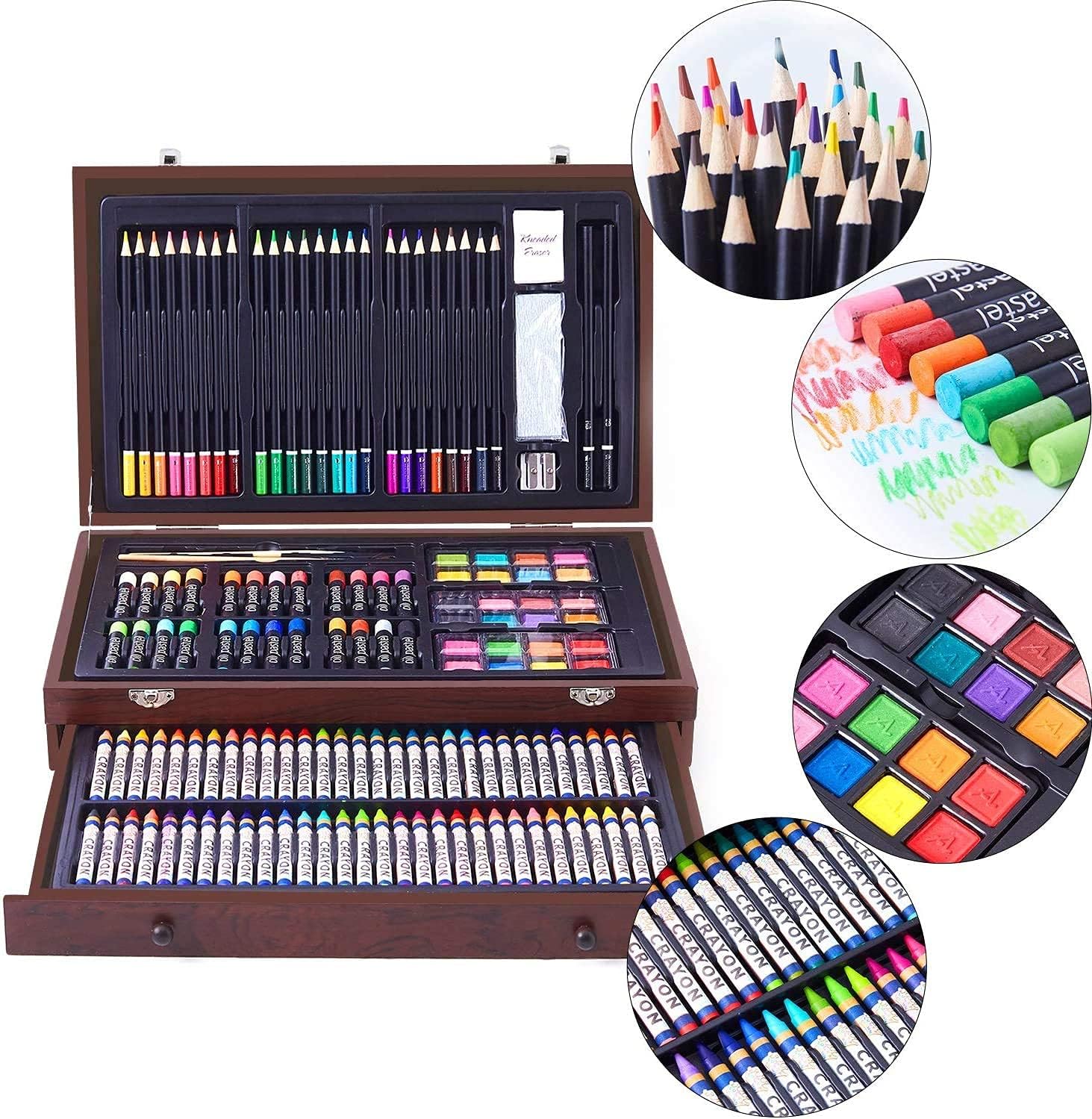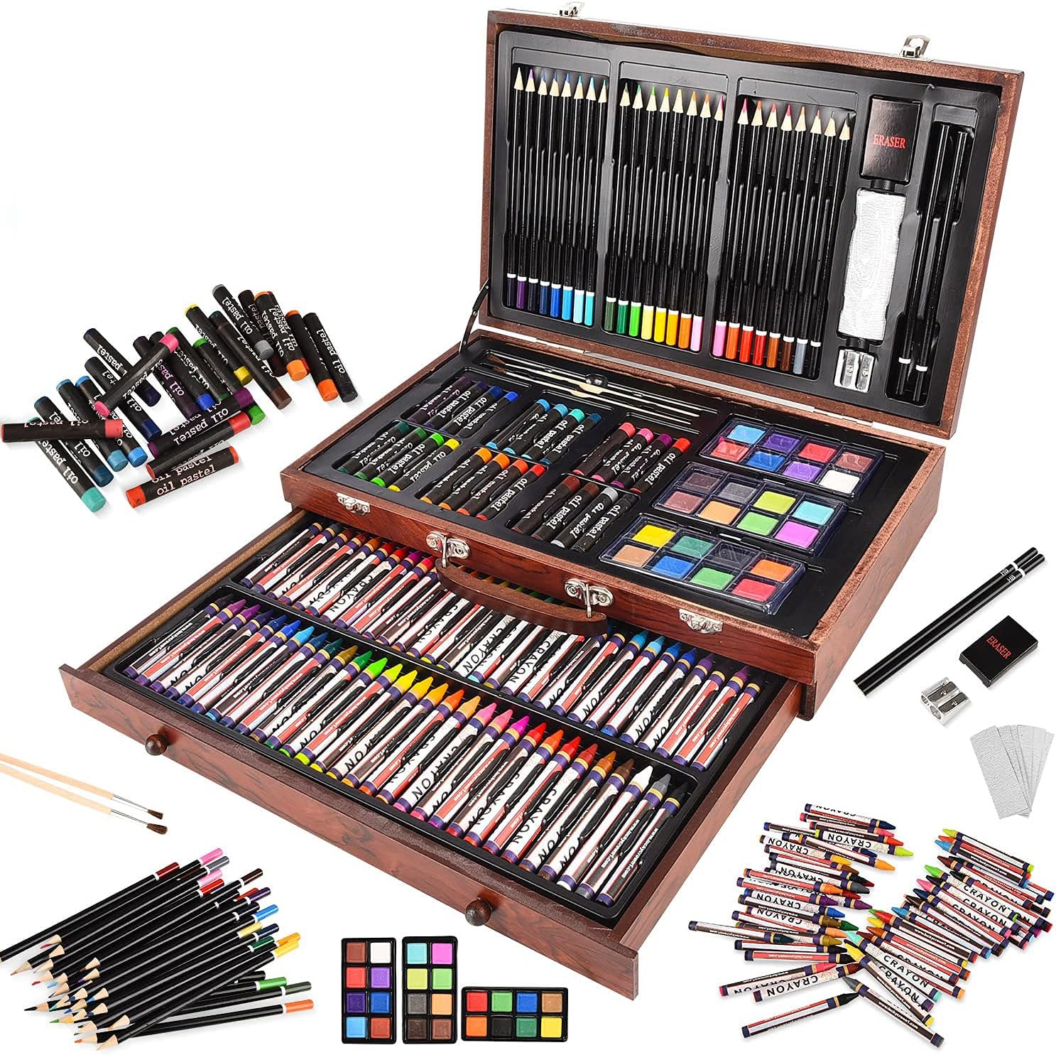 Whether you're blending pastels, layering watercolors, or sketching your next masterpiece, this deluxe set delivers everything you need to explore your artistic vision in one beautifully crafted box.