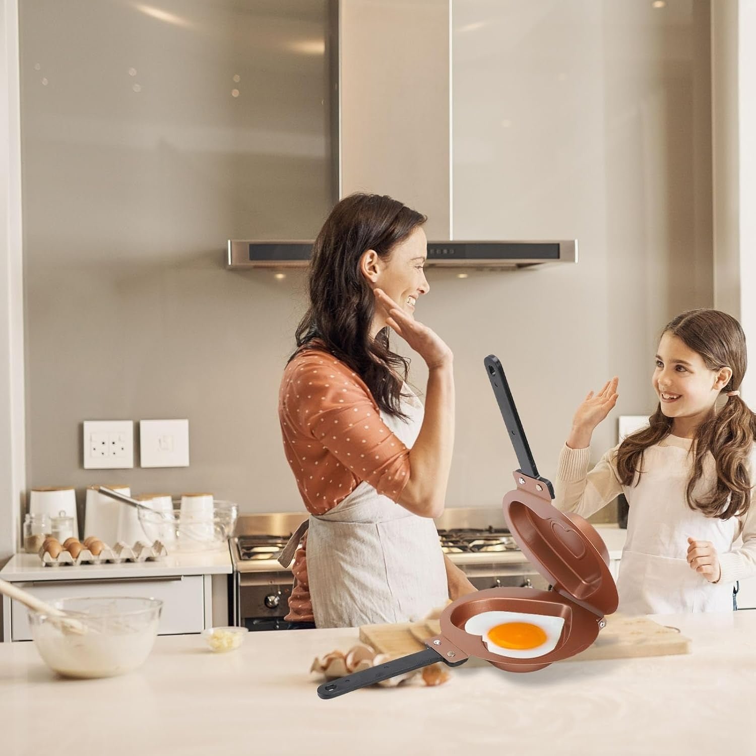 The fast, double-sided pancake maker features an innovative design that allows you to create crispy pancakes and cakes easily and efficiently. The easy-to-use mechanism makes cooking a breeze. With its special design that promotes even heating, this pancake maker saves you time and effort in the kitchen. Simply pour your batter into the pan, close the handle, and flip. This pancake maker is suitable for preparing a variety of meals, from breakfast to dinner and even desserts. The non-stick feature and convenient double-sided design make it easy to explore your culinary creativity.