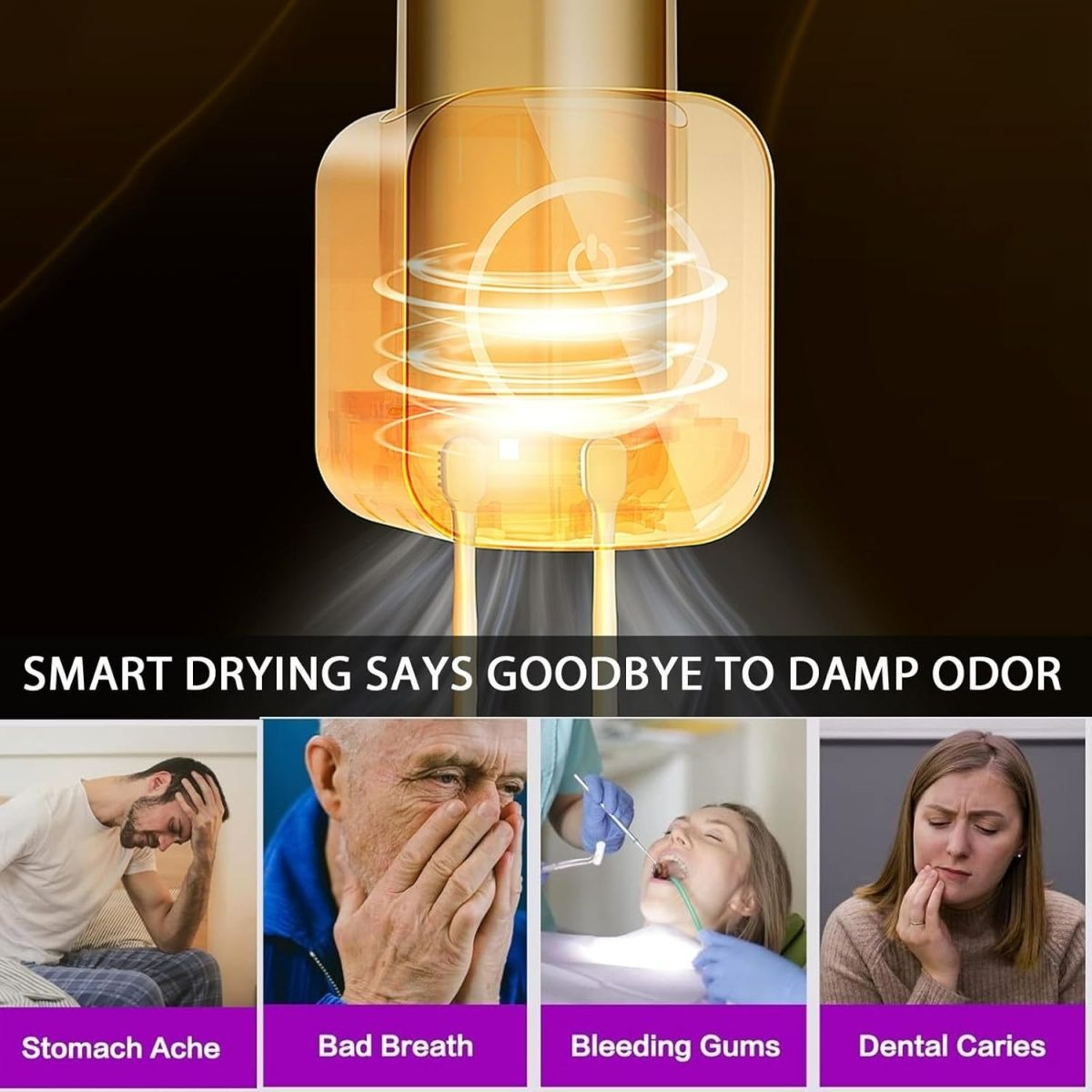 This bathroom toothbrush holder is equipped with automatic cleaning and hot air drying technology, which can clean the toothbrush and cup at the same time, saying goodbye to moisture and odor residue problems. Use a new toothbrush every day to protect oral health